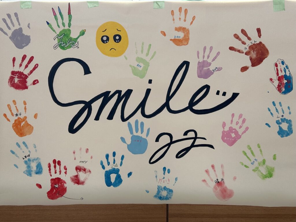 2年2組は、参加者全員が笑顔で球技大会に参加してほしいという思いを込めて、「smile」をクラス目標にし、クラスフラッグを作成しました。