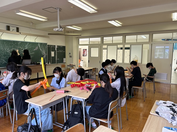 明日9月28日(土)は、英心高等学校桔梗が丘校の文化祭であり、1年生は主にこの水、金にクラス装飾を行いました。