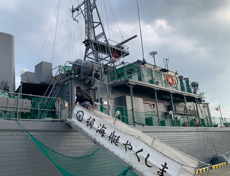 2月12日(木)松坂港に掃海艇「やくしま」が停泊し体験航海に参加希望の生徒と参加してきました。