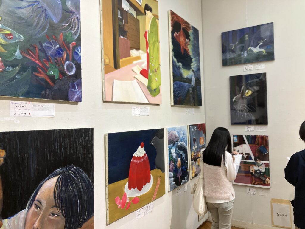 英心高校からは桔梗が丘校から2名、伊勢本校から1名の生徒が、美術・工芸部門に絵画作品を出展しました。