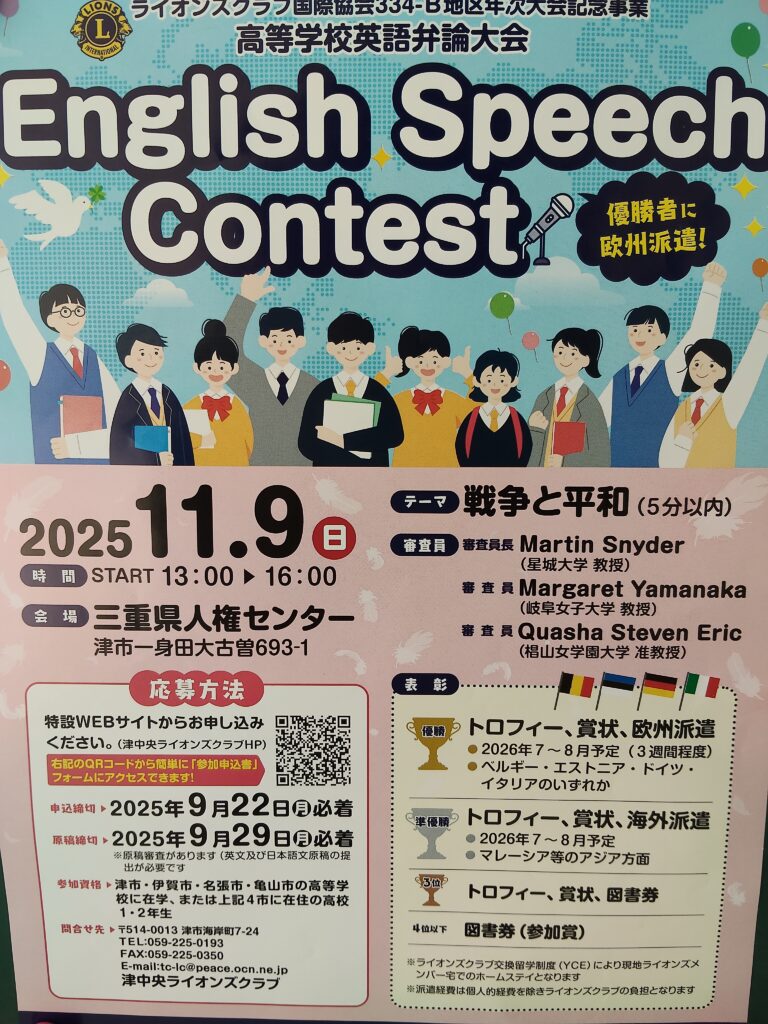 2025年11月9(日)に開催される「戦争と平和」をテーマにした英語のスピーチコンテストへの出場に向けて、練習に励んでいます。