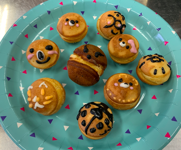 チョコを刻んで湯煎で溶かしコーンフレークを混ぜて固めたり、たこ焼き器でベビーカステラを作ってチョコペンで自分のオリジナルキャラクターをかいたりと