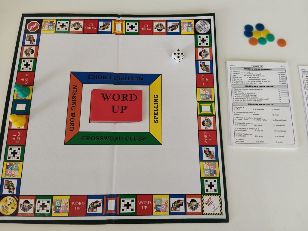 異文化交流ゼミでは、『Word Up』という英語のボードゲームを使って遊びました。Level1~5までの難易度のあるゲームで、Level1の初級からLevel5の上級まで質問カードがあります。今回は、英検の2級を持ってい